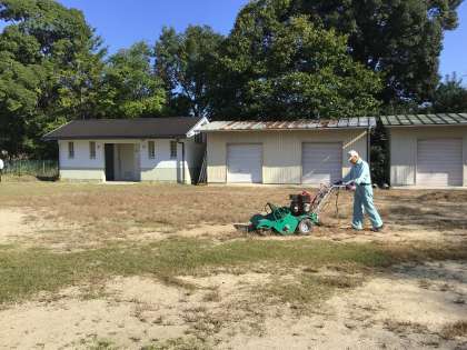 運動場の中心部分は、草がなくなりきれいになりましたが、隅のほうはまだまだ草が生い茂っている状態でした。