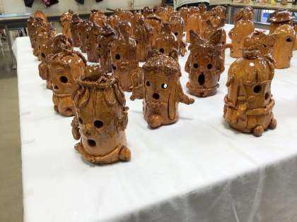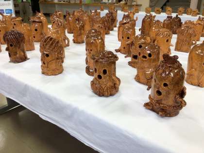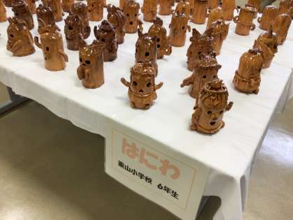 東山小学校は、6年生が図画工作の時間に制作したはにわを出展しました。