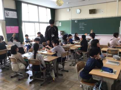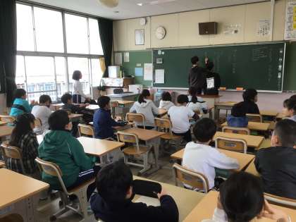5年生が、グループで交流をしたり、級訓を話し合って決めたりしています。