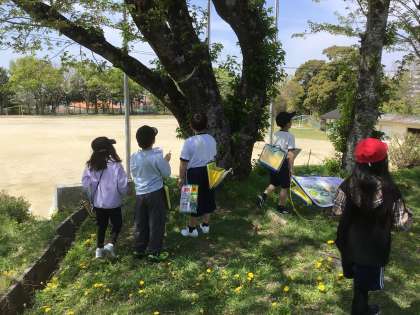 3年生が、理科の授業で春の生き物や植物を観察しています。 たくさん見つけられたかな?