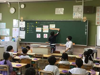 1年生が、算数で物の数の数え方を勉強しています。