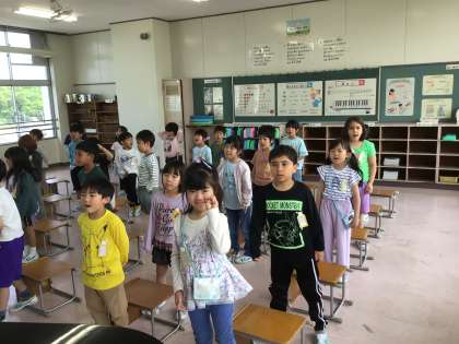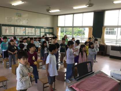 1年生が、音楽の時間に校歌の練習をしています。