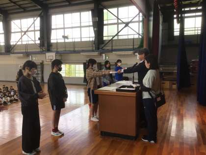 3〜6年生の学級委員と各委員会の委員長に任命状が渡されました。