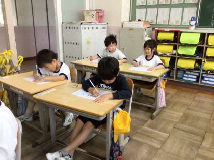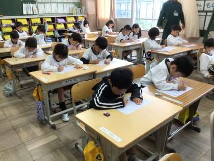 1年生がひらがなの練習をしています。