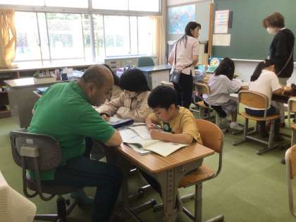 わくわく教室で国語の勉強をしています。