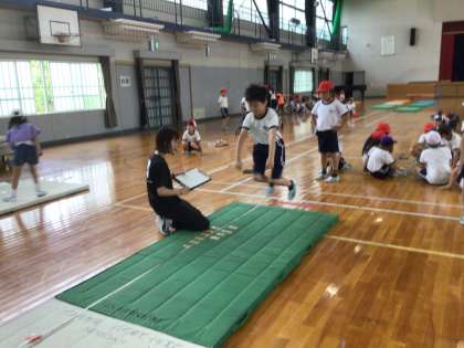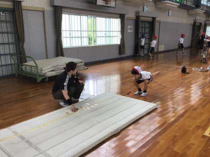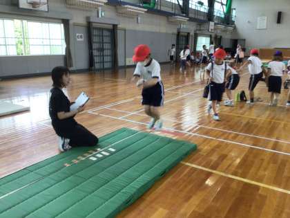 3年生が、立ち幅跳びをしています。