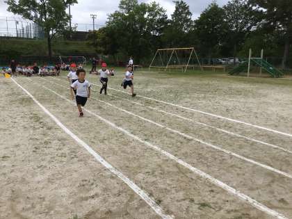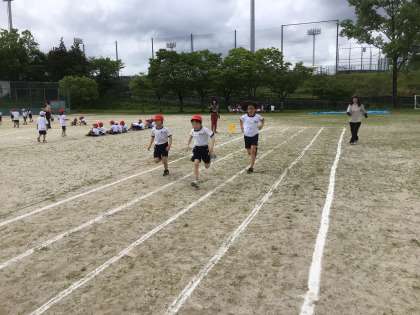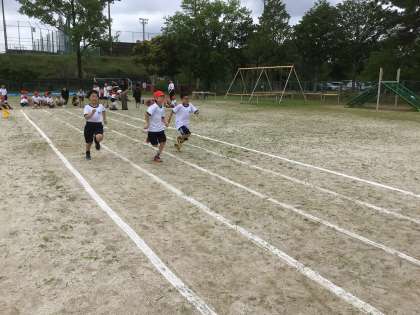 体力テストの様子です。 3年生が、50メートル走をしています。