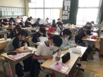 6年生が、算数のテキストを解いています。