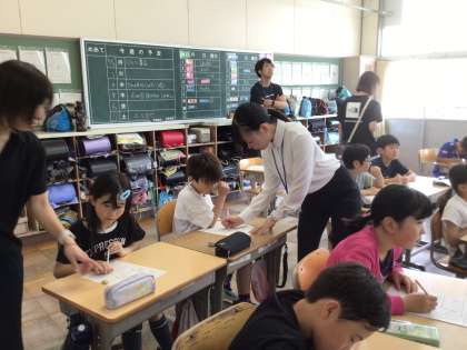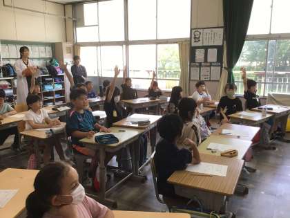 教育実習生が、体育の保健分野で授業実習を行っています。
