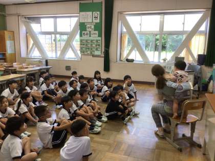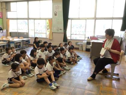 子どもたちは、ボランティアの方々のお話に耳を傾けていました。