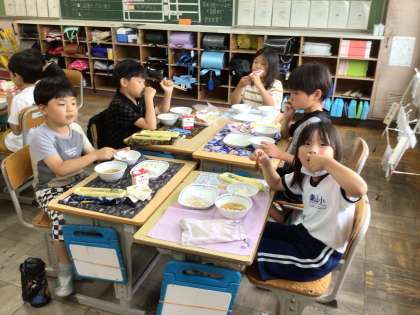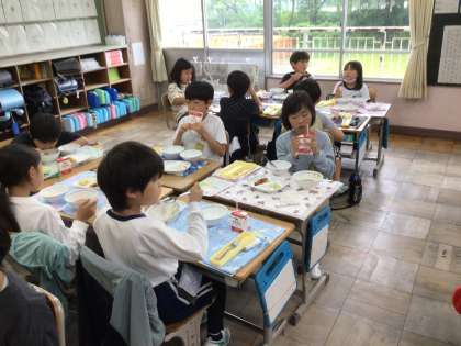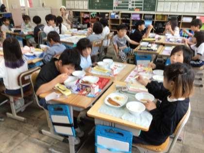 3年生の様子です。 給食を大盛りにしている子もいますね。