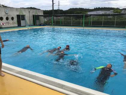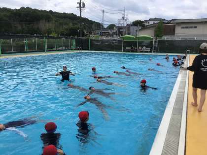 6年生が、プールで仰向けになって浮く練習をしていました。 なかなか難しいようです。