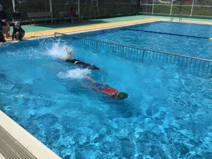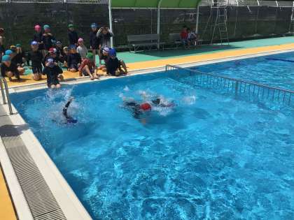 2年生が、プールに入っています。 今日は気温が高いので、気持ちよさそうです。