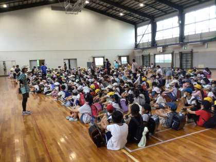体育館はエアコンがありますので、運動場ではなく、体育館に通学団ごとに整列してから、下校をする方法に変更しました。