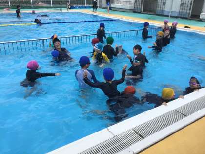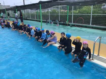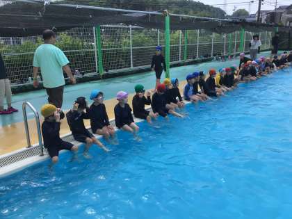 1年生が、プールに入っています。 自由時間を楽しんでいます。