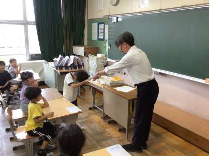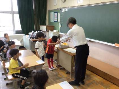2年生が、東山賞を校長先生から受け取っています。