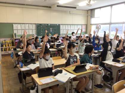 6年生が、国語の物語教材「風切るつばさ」の登場人物の気持ちについて、話し合いをしています。