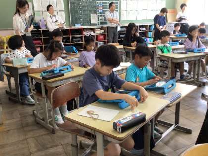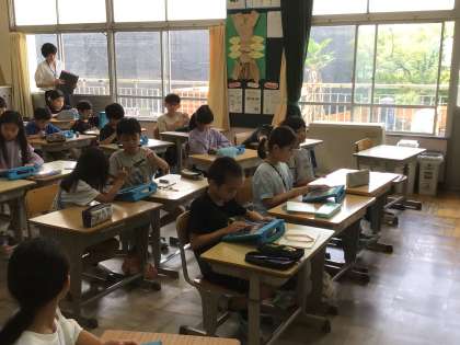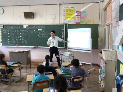 3年生が、学習用タブレットを使って、算数の勉強をしています。
