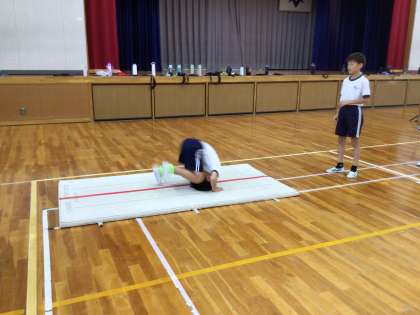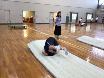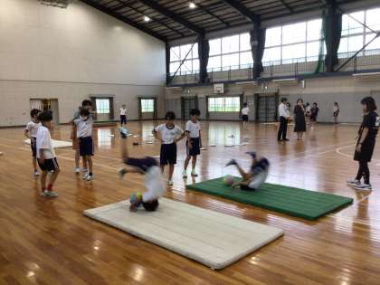 6年生が、マット運動をしています。