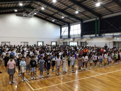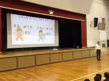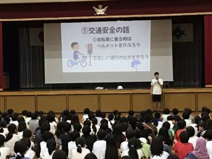 最初に校長先生の話を聞いた後、夏休みの生活について担当の先生から話を聞きました。