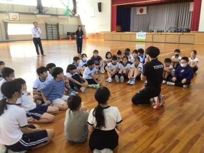 5年生が、スケートの石井選手と中島選手から夢に向かって努力することの大切さを学びました。