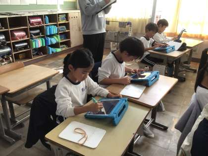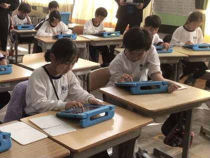 学習用タブレットを使って、車が走った距離について調べました。