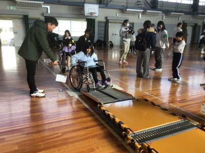 車いす体験を通してユニバーサルデザインの考え方を知りました。