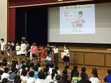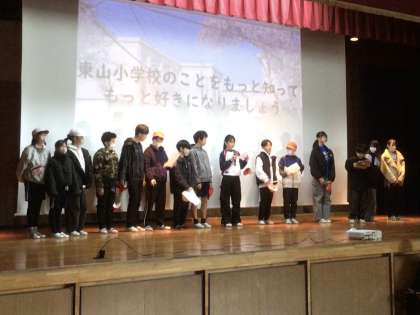 代表委員会の企画による体操を全校で行った後、広報委員会による東山小に関するクイズをして楽しみました。