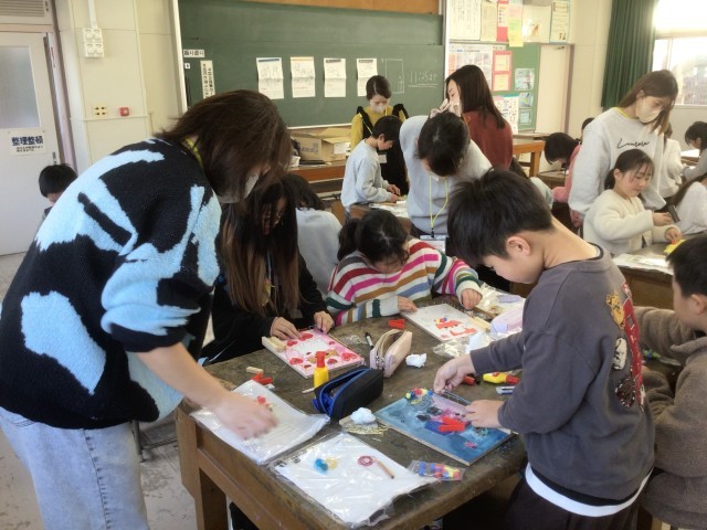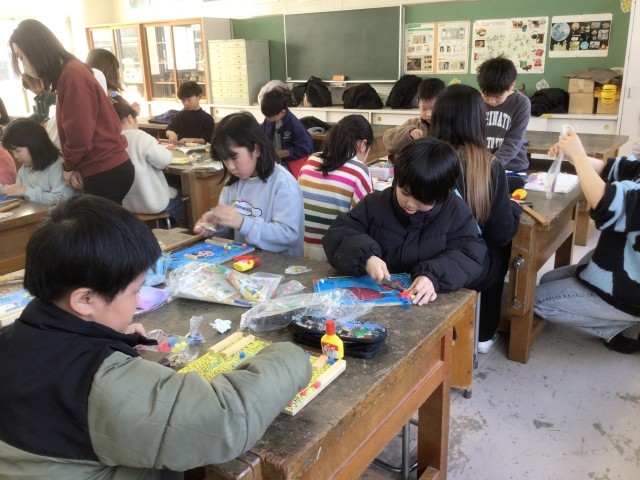 3年生が、図工で金づちを使って木に釘を打ち、作品づくりに挑戦しています。釘を並べたり位置を工夫したりして、模様や形を作っていきます。保護者ボランティアの皆さんにもご協力いただきました。ありがとうございました。