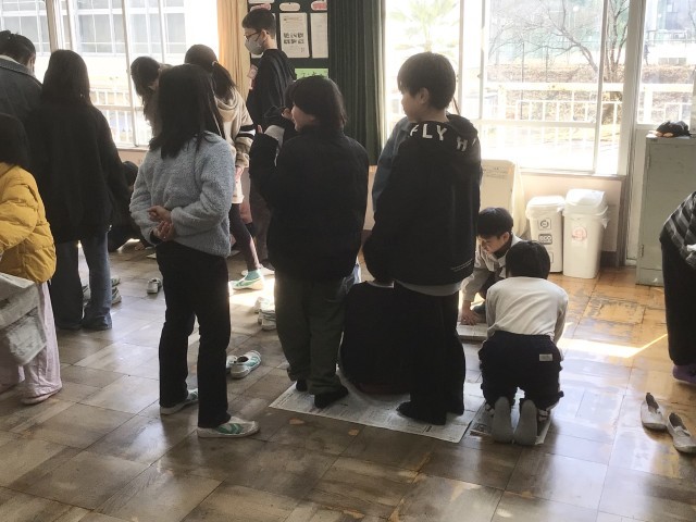 3月のわくファミの様子です。普段は6年生がゲームを考えていましたが、今回は、初めて5年生が担当しました。いすとりゲームをしたり、何でもバスケットをしたり、新聞紙の上に何人のれるか競争をしたりしました。