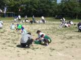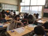 1年生から6年生までの縦割り班ごとに分かれて、ゲームをしています。 絵かきしりと...