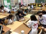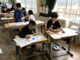5年生が、家庭科の時間に手縫いの練習をしています。 ボランティアさんにも手伝って...