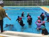 3年生が、絵の具とクレヨンを使って、プールに入ったときの様子を絵にしています。