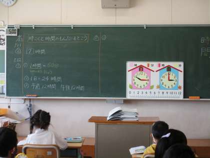 2年生 算数科「時こくと時間」の学習です。 公開日 2021/04/23 更新日 2021/04/23 各学年から 2年生の算数科の学習は、時間を学んで います。時刻と時間の違い、何時から何時 は、何時間たちましたか?という学習をして います。 ご家庭でも、時計を見て、問いかけてみ てください。生活の中で、興味をもって考 えることが、学びに大切です。