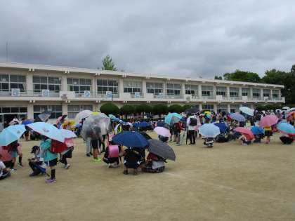 4月28日は、傘を持って登校して来ました。