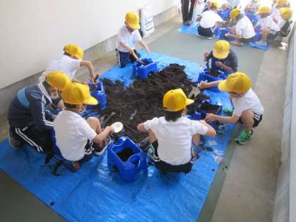 1年生 生活科「アサガオを育てよう」 公開日 2021/05/06 更新日 2021/05/06 各学年から 1年生は、生活科の学習でアサガオを育てます。今日はその準備として、鉢に土と肥料を入れました。目と鼻と手を使って、土の色や臭いや感触を学んでいきます。明日、種まきの予定です。