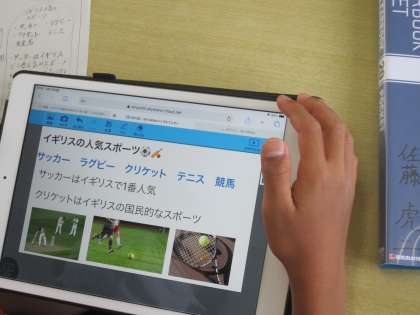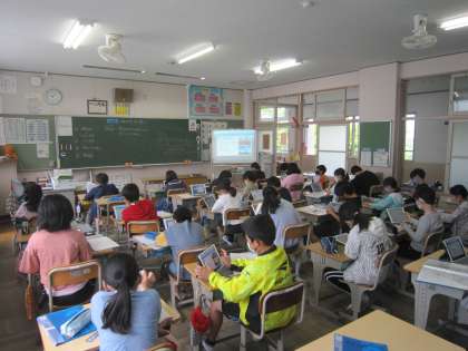 5年生は、「国際理解」を大きなテーマとして総合的な学習の時間を進めていきます。まずは、各国の文化についてタブレットを活用して調べていました。子どもたちは、食事や着るもの、遊び、盛んなスポーツに興味・関心をもったようです。