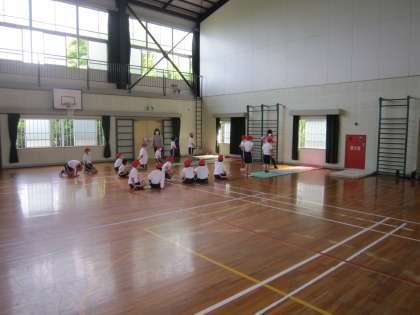 体育館では、上体起こし、反復横跳び、長座体前屈、立ち幅跳びを計測しました。子どもたちは、体の硬さや重さを感じていたようです。今後、結果を分析し、体育の授業で重点的に取り組むべき内容をコロナ禍に合わせて考えていきます。また、体育委員会では、体力が向上する遊びを紹介する取り組みも計画されています。