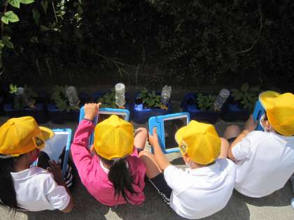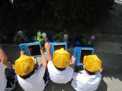 1年 タブレットであさがおの記録 公開日 2021/05/31 更新日 2021/05/31 各学年から タブレットの写真機能を活用して、生活科で育てているあさがおの写真を撮りました。拡大して見たり、涼しい教室でノートに書き写したりととても便利です。