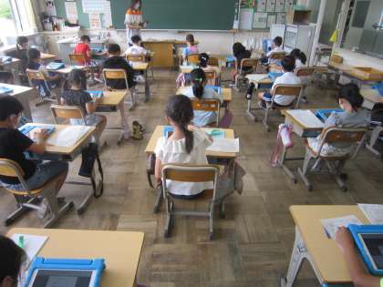 今日は、1・2年生でオンライン健康観察を行いました。1・2年生は、3〜6年生より操作の少ない手書き形式にしました。にこちゃんマークからは、体の調子だけではなく、心も元気な様子が伝わってきます。
