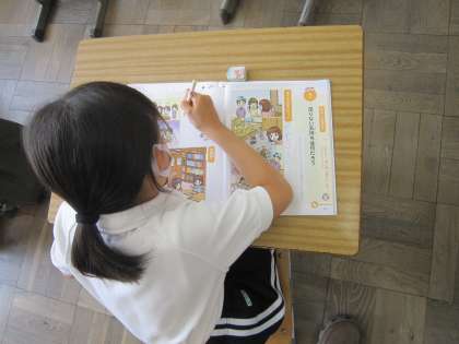 3年生では、「足りない気持ち」について、教科書のイラストをもとに考えました。自分の言動を振り返るきっかけになりました。