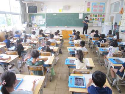 1年 図画工作科「歯みがきのポスターをかこう」 公開日 2021/06/15 更新日 2021/06/15 各学年から 歯をみがいている自分の顔をタブレットで写真に撮ります。その写真を参考に、歯みがきのポスターを描いています。これまでは、手鏡で自分の顔を見ながら描いていましたが、今はタブレットを活用しています。