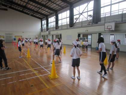 相手に当てられたら外野に出るのではなく、相手に捕られないように内野と外野でボールを行き来すると得点になる逆ドッジに夢中になっているところでした。今日は、リーグ戦ということもあり、いつも以上に盛り上がっていたようです。