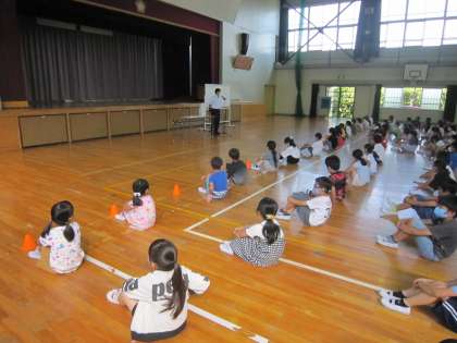 校長先生からは、学習・健康・安全についてのお話がありました。最後に「目標をもって夏休みにしかできないことをがんばってください」とメッセージがありました。