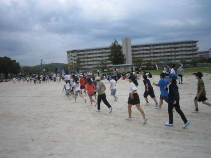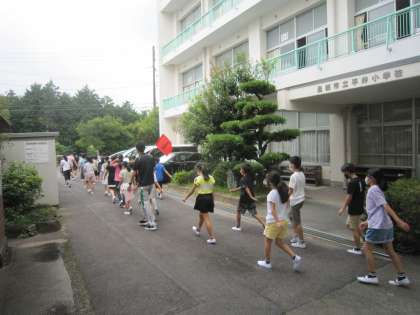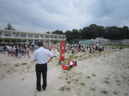学校林である「やまびこの森」に地震による土砂災害の予兆があることを想定し、通常の避難経路(地震による火災時)とは異なる経路での避難になりました。