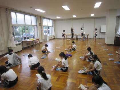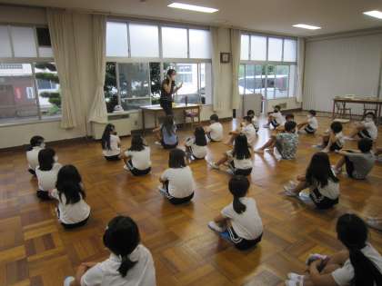 また、身体測定の前には、保健指導として「ハンカチで手をふく」ことについて考えました。保健の先生からの「手を洗った後にハンカチで手をふかないとどうなるでしょう」という問いかけに、子どもたちからは「手を洗って吹かずにピッピと手を払うと、周りの人にかかるからよくないよ」や「ふかないと汚いよ」といった意見がありました。