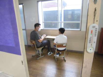 夏休みの思い出を聞きながら、話しやすい雰囲気づくりに心がけ、子どもたちの悩みや困りごとに寄り添います。