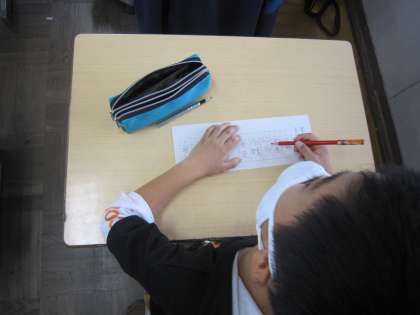 今日は、3年生は漢字の小テスト、4年生も漢字の小テスト、6年生は文章読解ドリルに取り組んでいました。繰り返すことで積み重ねられるように授業や宿題の内容と関連付けて計画的に進めています。