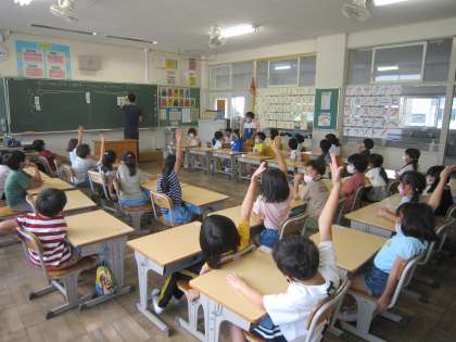 どの教室にも掲示してある「話し上手」・「聞き上手」をもとに、自分の考えを伝えたり聞き取ったりしています。時には、実演して伝えることもあります。