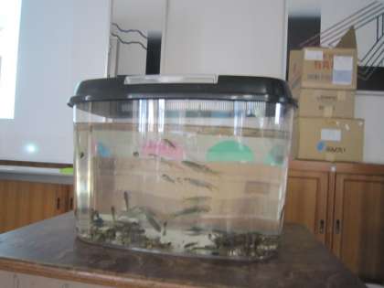 ドジョウ、オイカワ、ザリガニ、ヤゴ、カワムツ、巻貝…